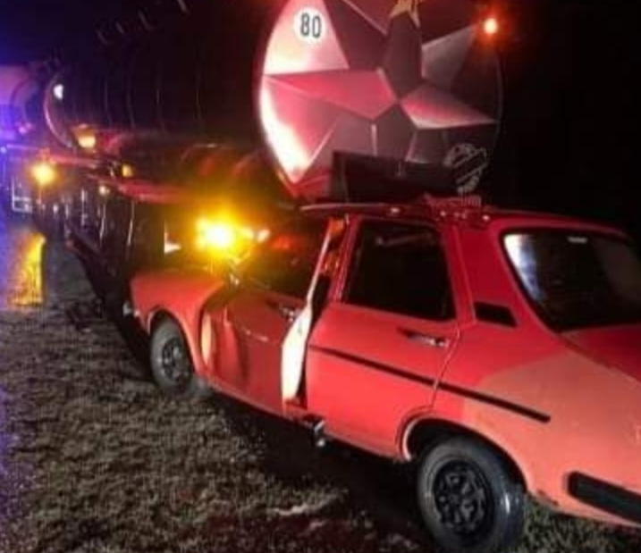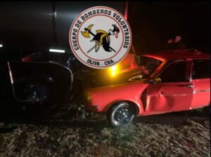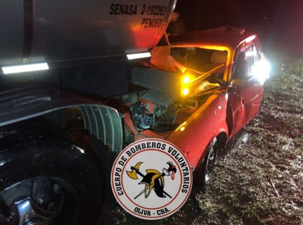 Un Renault 12 con cinco ocupantes terminó debajo de un camión, se hospitalizo a 4 de los ocupantes, trabajaron en el lugar bomberos de Oliva, colabora policia de Oliva y Pampayasta.