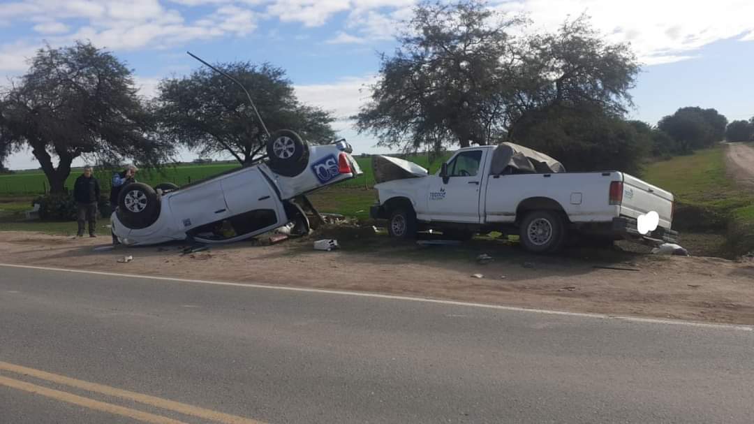 Por razones que se tratan de establecer colisionaron dos camionetas, una Nissan Frontier y con una Ford F100, a causa de la colisión la Nissan vuelca sobre la banquina. Ambos ocupantes de los vehiculos fueron trasladados a la clínica local para una mejor atención. Trabajaron en el lugar Cooperativa eléctrica, Bomberos de Luque y personal Municipal.