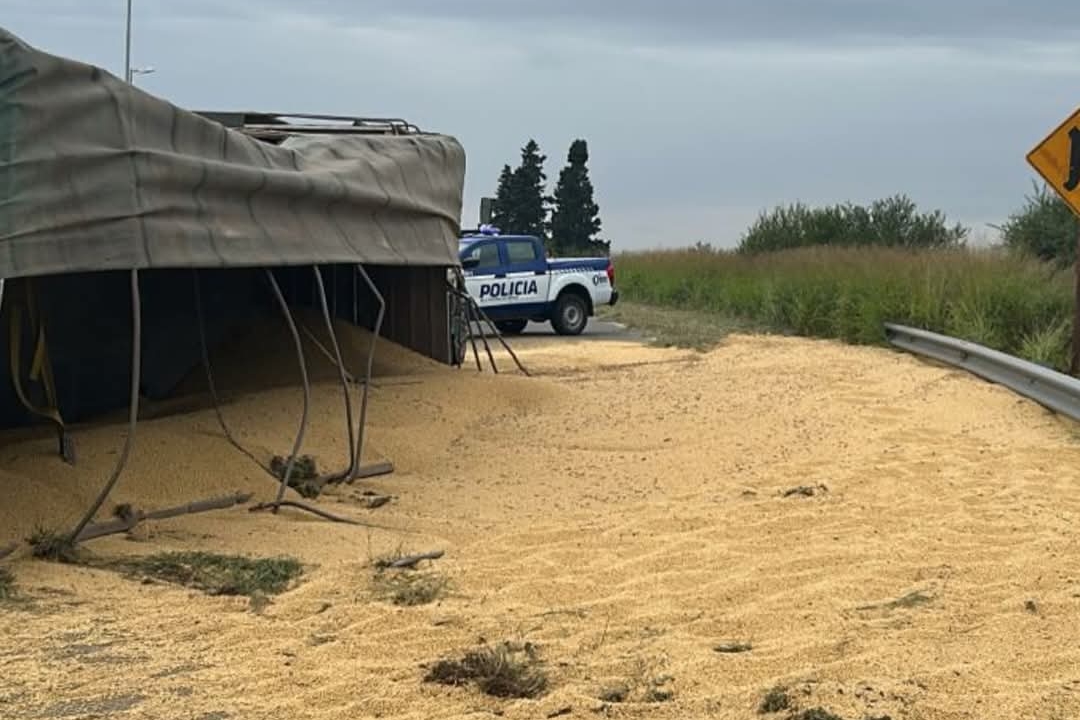 En la tarde de hoy, un camión que transportaba cereales sufrió un vuelco sobre el puente de ingreso a la ciudad de Río Segundo, en la Ruta C45.