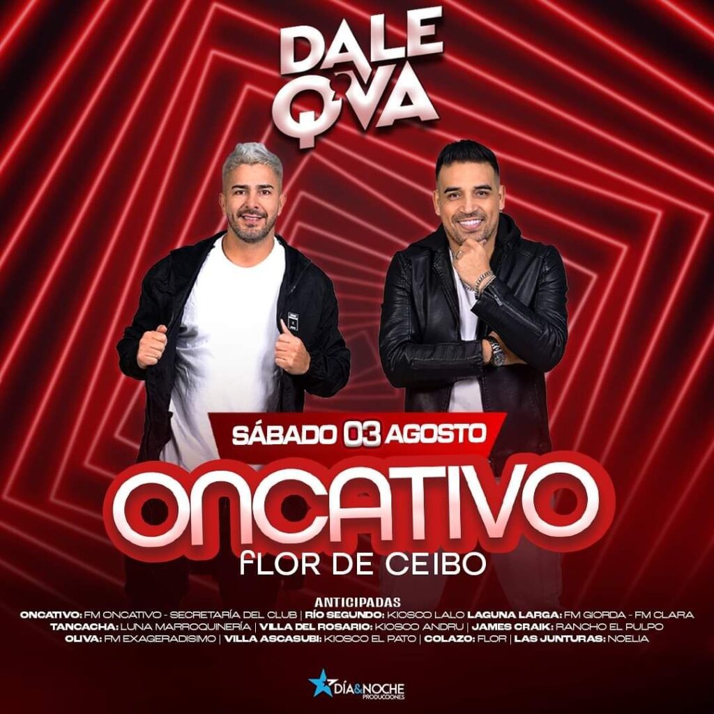 Este Sábado 3 de Agosto otro Bailazo en la Ruta 9 llega Dale Q’ Va a Flor de Ceibo de Oncativo, podes conseguir tu anticipada en: