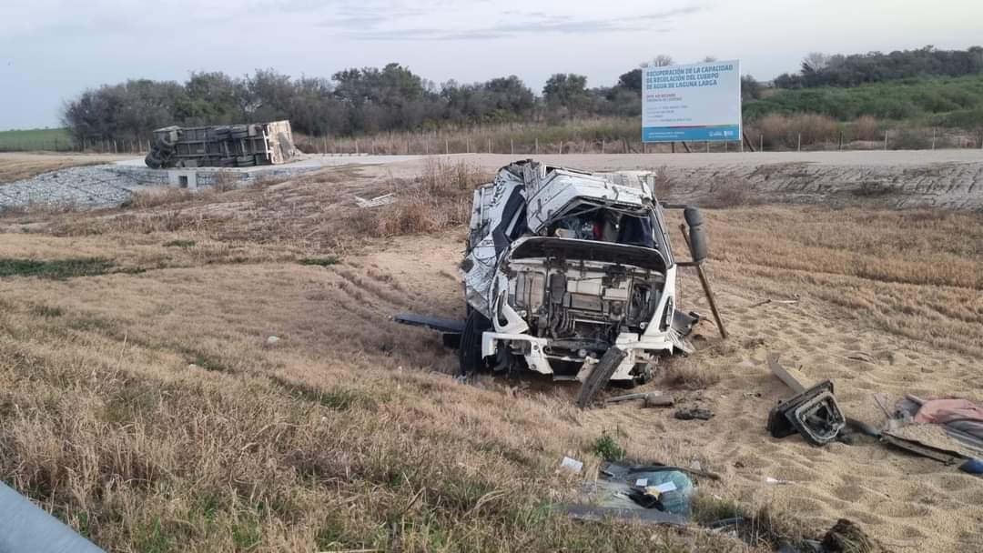 Por causas a establecer este viernes volco un camión marca Iveco modelo 170E25 con acoplado a la altura de Laguna Larga sobre el autopista. El mismo estaba cargado con soja, el conductor de 45 años fue trasladado al hospital municipal con lesiones leves.