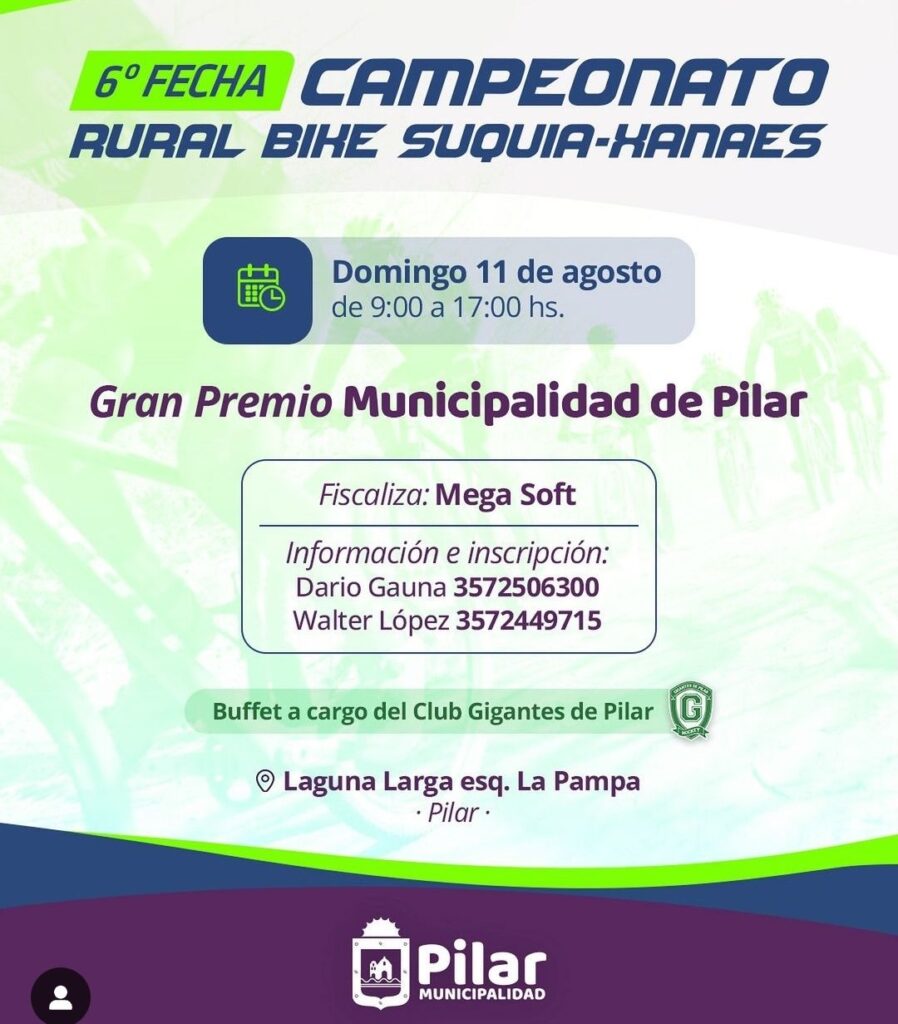 El próximo domingo Pilar será sede de la 6 fecha del Campeonato Suquía-Xanaes de Rural Bike, Gran Premio Municipalidad de Pilar.