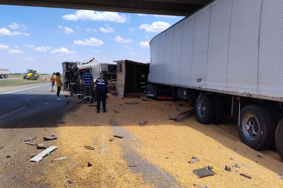 El hecho se produjo a las 14 hs de hoy jueves en la autopista Córdoba Rosario km 636, se constata una colision y vuelco de un camión marca Fiat con acoplado cargado de maiz que circulaba en dirección a Rosario.