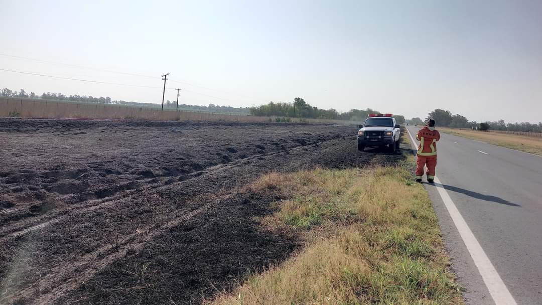 Sucedio esta tarde, cuando por causas a establecer se incendieron pastizales a la vera de ruta nacional 9, entre Manfredi y Oncativo.