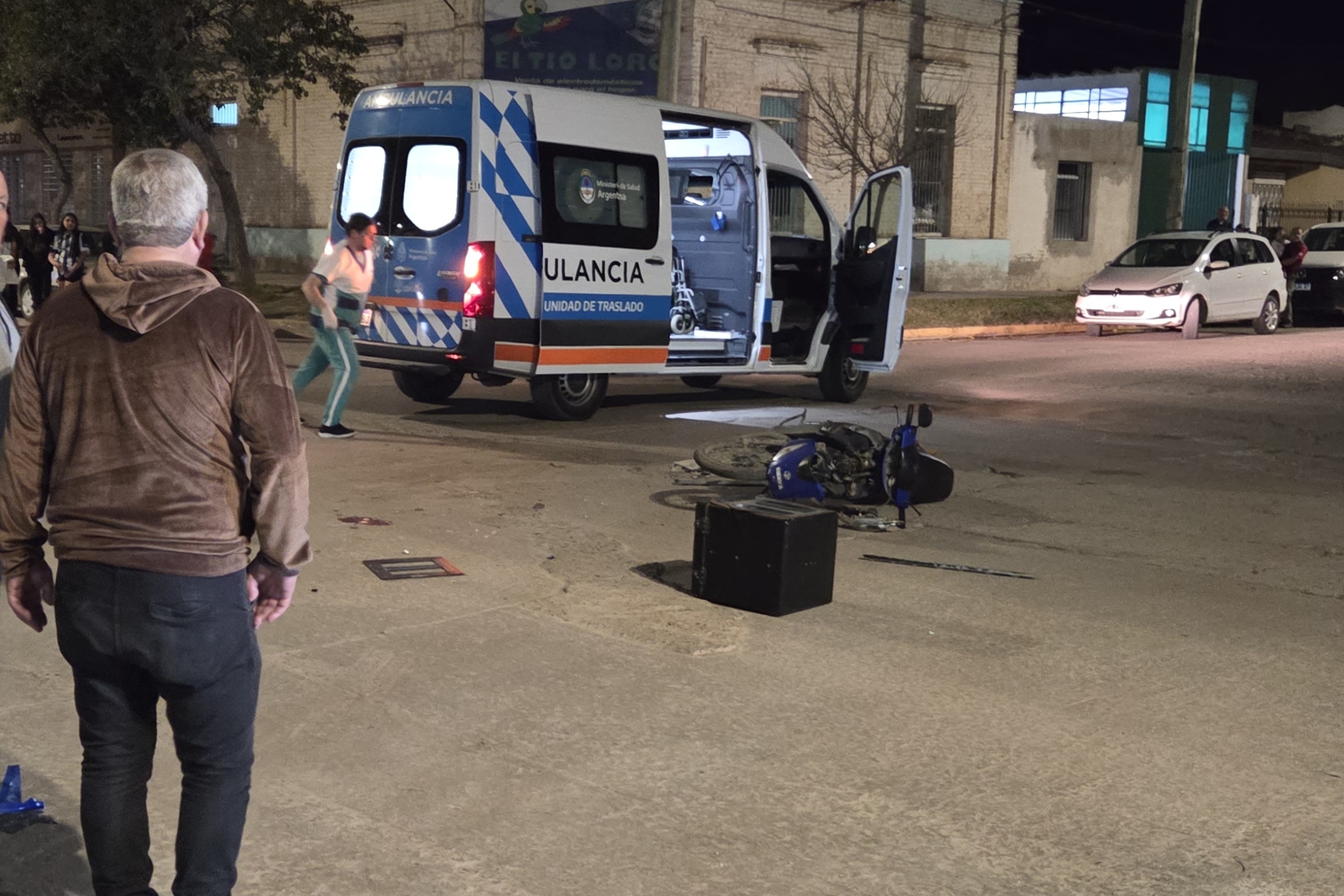 En la noche del viernes, se produjo un accidente vial en la intersección de las calles General Paz y Sarmiento, en la localidad de Laguna Larga. El siniestro involucró a una camioneta Renault Duster Oroch y una motocicleta utilizada para servicios de delivery.