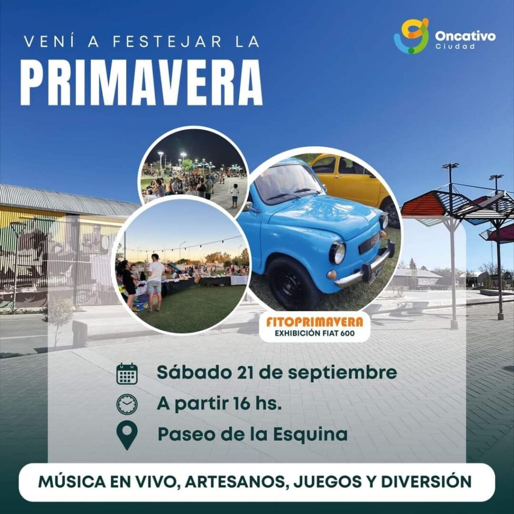 El Municipio de Oncativo, te invita a festejar la primavera con una increíble exhibición de Fiat 600, música en vivo, artesanos, juegos y toda la diversión que trae la llegada de la primavera.
