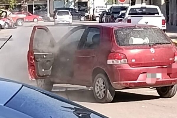 Sucedio hace instantes en cercanías de la Municipalidad de Oncativo, principio de incendio de un vehículo Fiat Palio. Acuden Bomberos Voluntarios. Fuente: Maria Rosa Diaz.