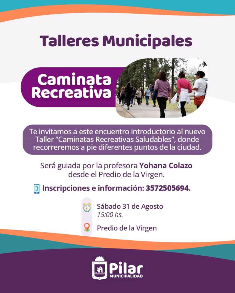 Organizado por la Municipalidad de Pilar, se llevará a cabo este sábado 31 de agosto, a partir de las 15 hs, en el predio de la Virgen una caminata recreativa. La misma tendrá una extensión de 4,5 km.