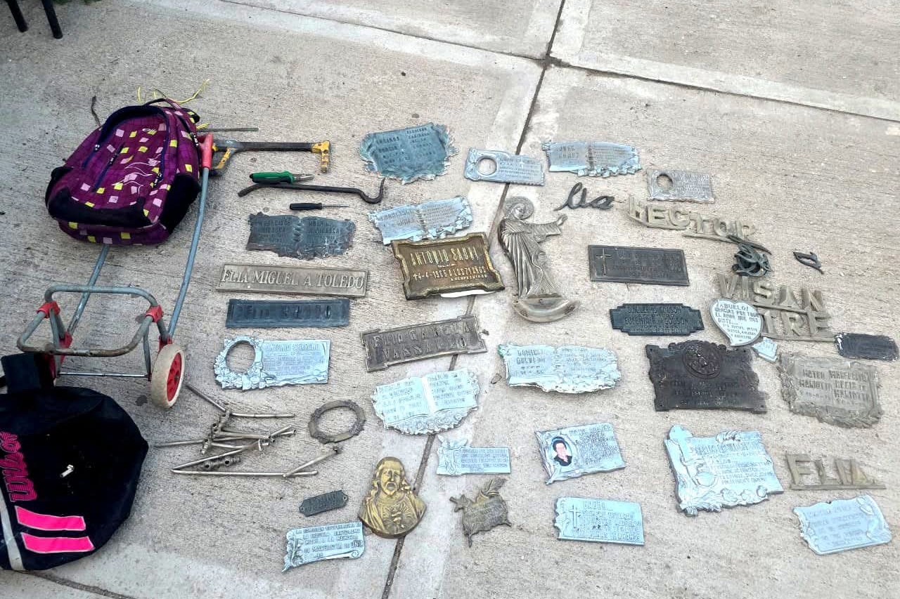 El hecho ocurrió a plena luz del día, cuando los individuos regresaban del cementerio empujando un carrito que contenía las piezas metálicas sustraídas. Al ser detenidos, los uniformados constataron que llevaban varias placas, presuntamente retiradas de distintas sepulturas.