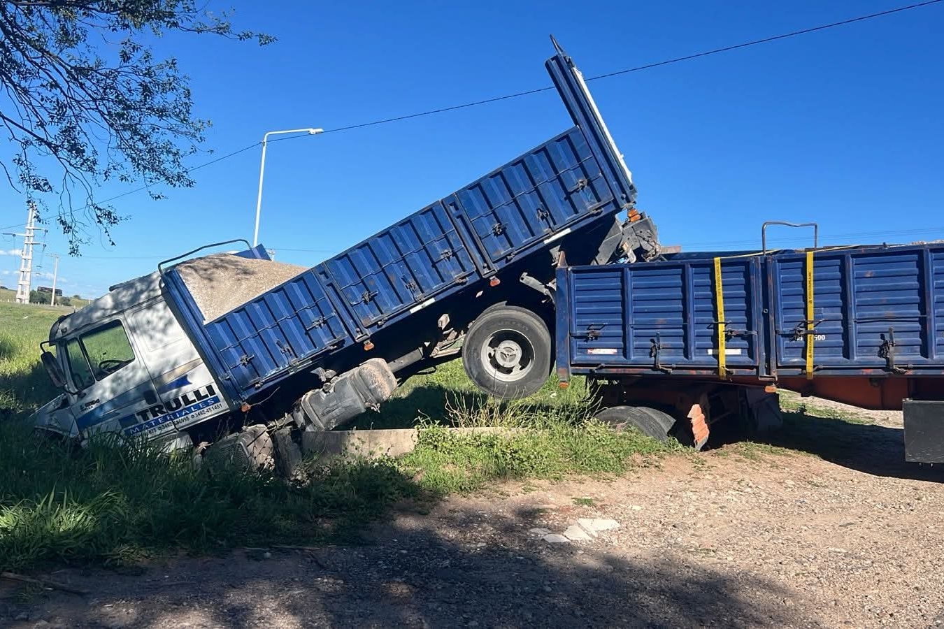 En la mañana del martes, un camión Mercedes Benz 1634 protagonizó un incidente vial en el acceso a la autopista de Río Segundo, al sufrir una rotura en la dirección mientras transportaba piedras.