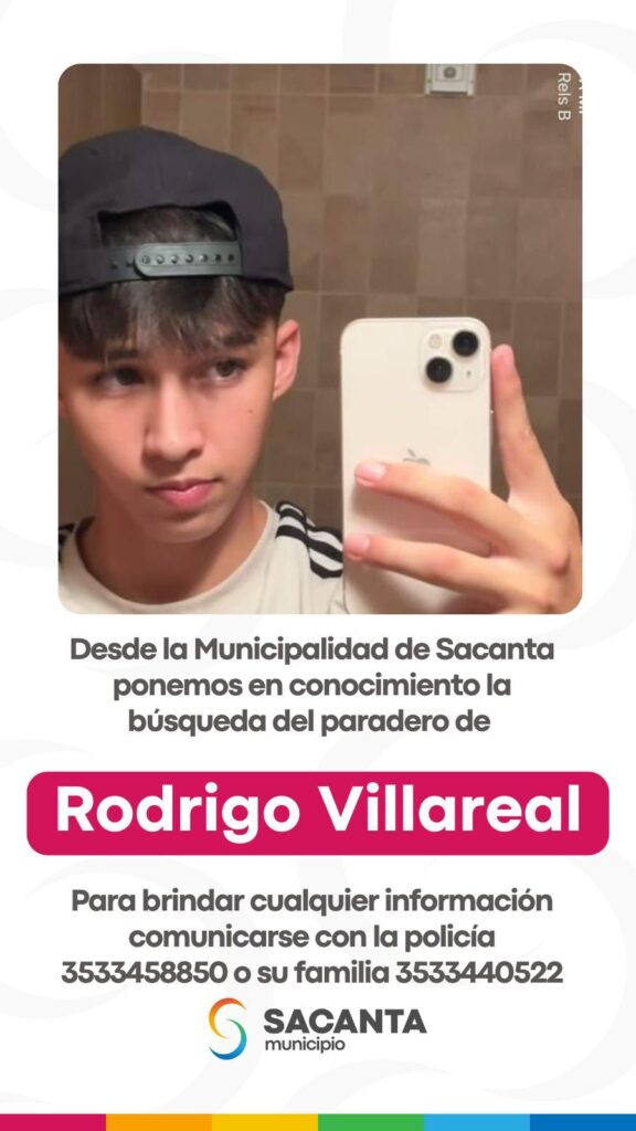 La comunidad puede brindar información a través de dos canales: la policía, al número 3533458850, o directamente a la familia de Rodrigo, al 3533440522.