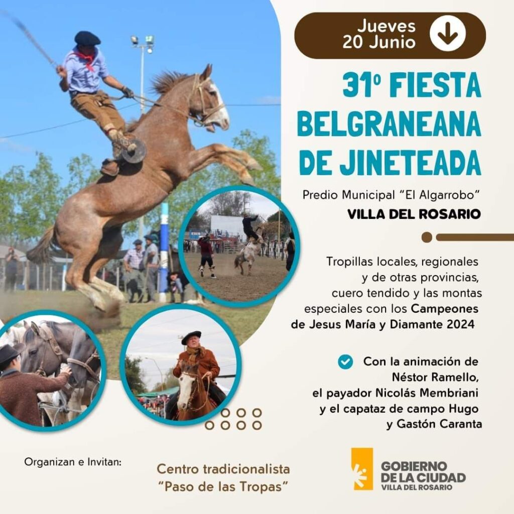 Llega una nueva edición de la 31° Fiesta Belgraneana de Jineteada en Villa del Rosario, con la presencia de tropillas locales, regionales y de otras provincias, cuero tendido y las montas especiales con los Campeones de Jesús María y Diamante 2024.