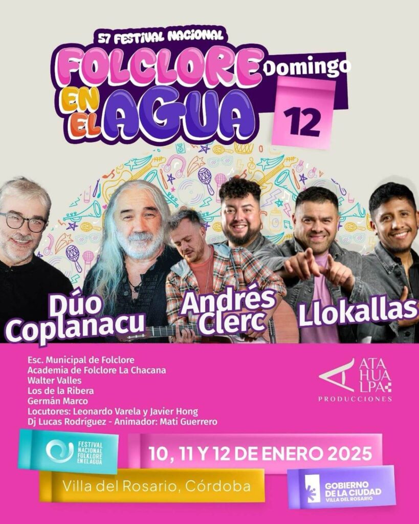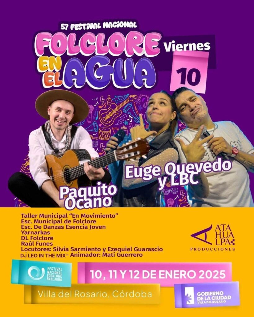 La 57º Edición del Festival Nacional de Folclore en el Agua 2025 en Villa del Rosario está a punto de comenzar, y las entradas ya están disponibles para el público. Este evento, que se llevará a cabo del viernes 10 al domingo 12 de enero, promete ser una celebración vibrante de la música, la gastronomía y la cultura local.