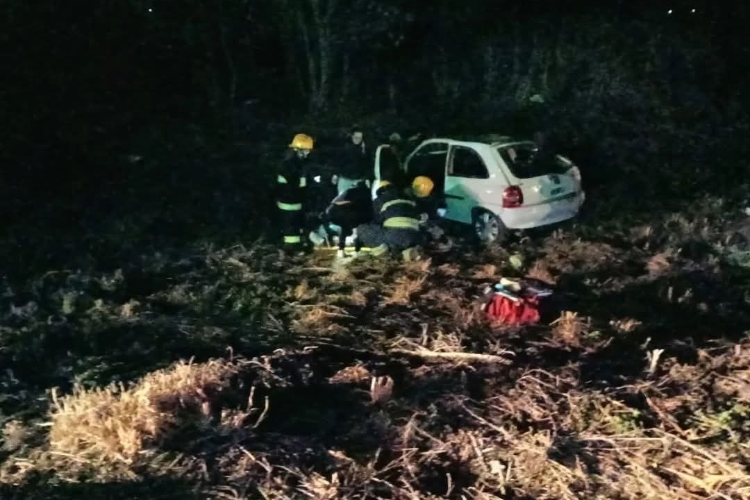Bomberos Voluntarios de Manfredi acudieron a un llamado de emergencia en la madrugada del domingo, tras el vuelco de un vehículo Chevrolet Corsa en el kilómetro 634 de la Ruta Nacional Nº 9.